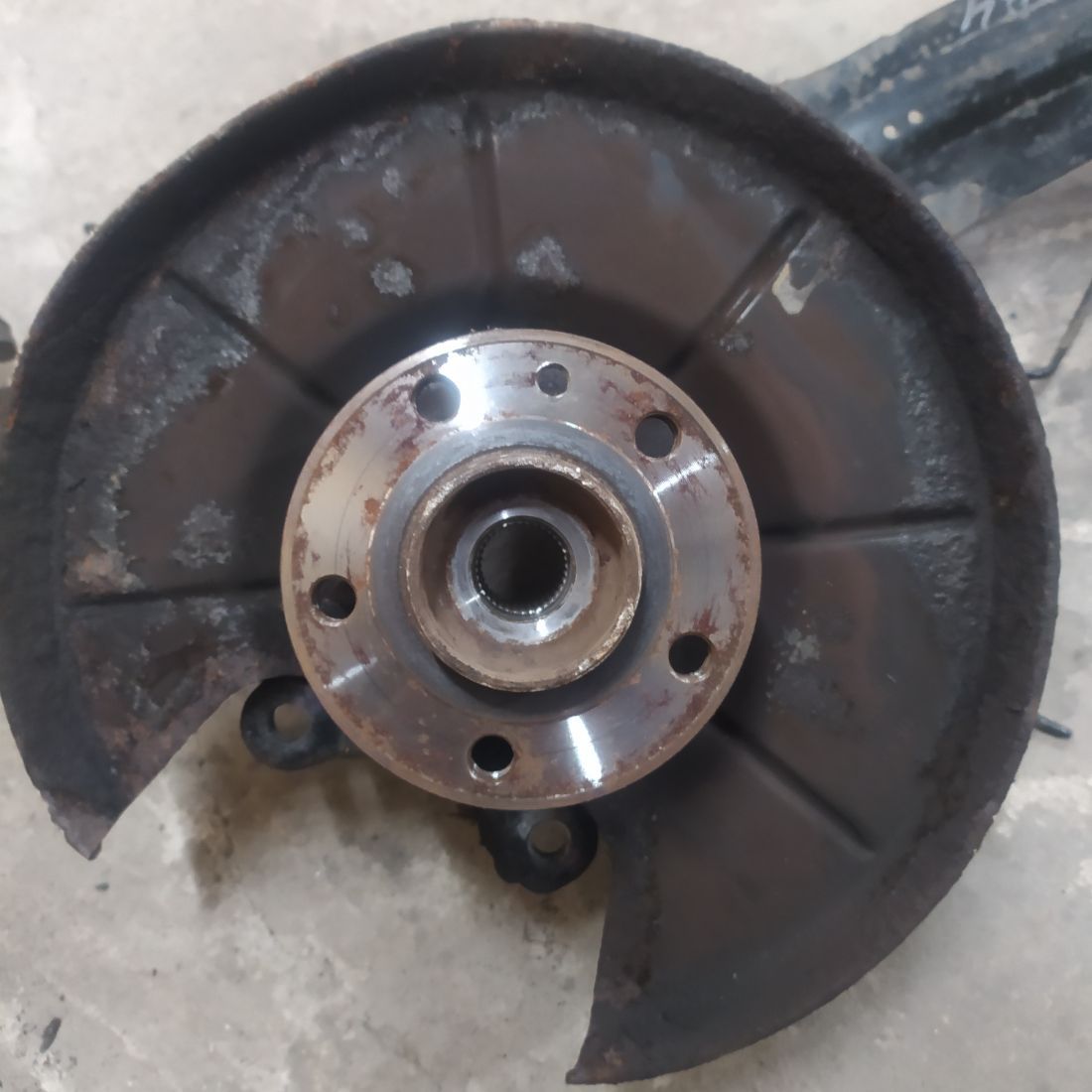 Задний левый рычаг в сборе (в комплекте со ступицей, цапфой, защитой тормозного диска), в отличном состоянии, без дефектов.