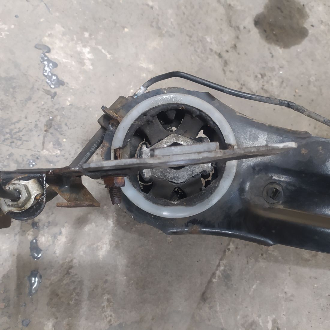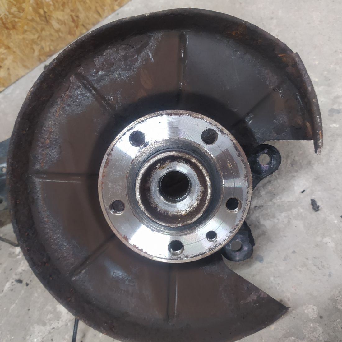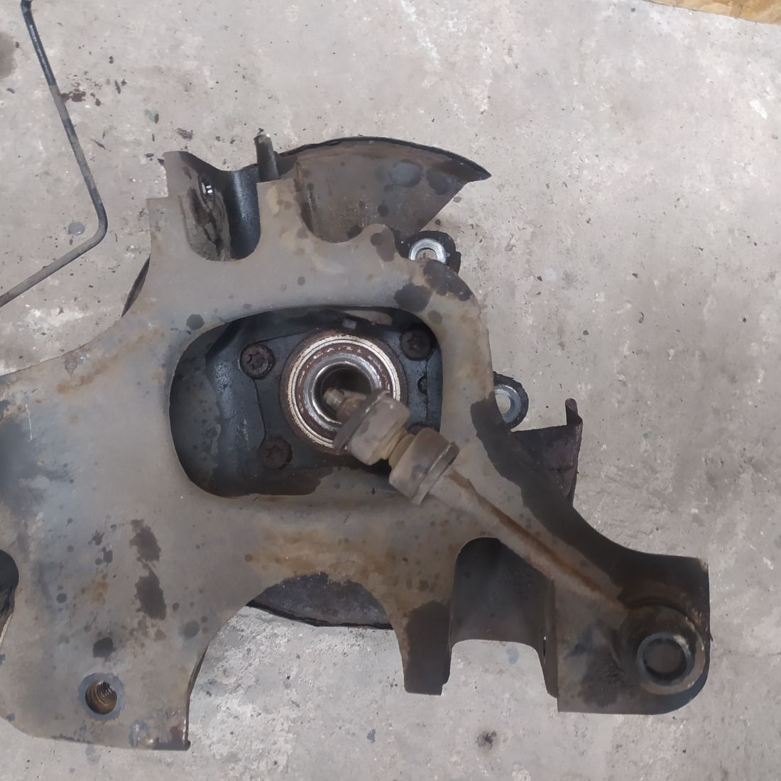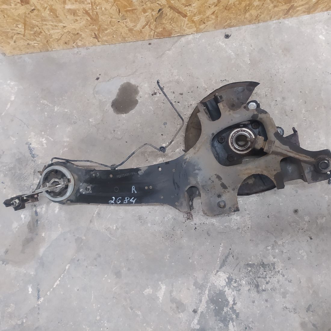 Задний правый рычаг в сборе (в комплекте со ступицей, цапфой, защитой тормозного диска), в отличном состоянии, без дефектов.