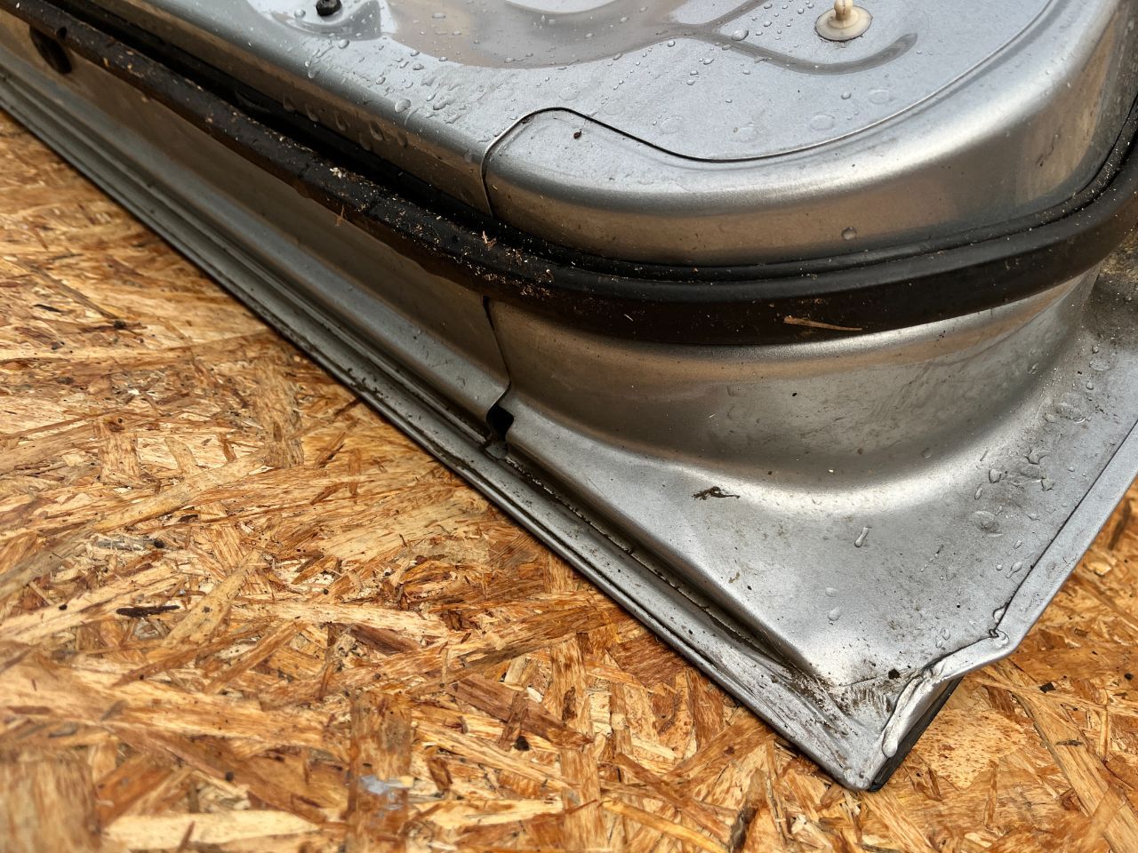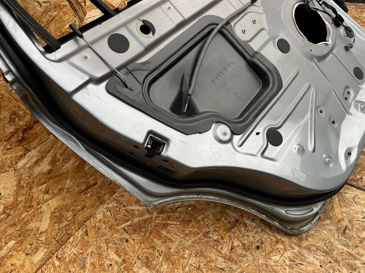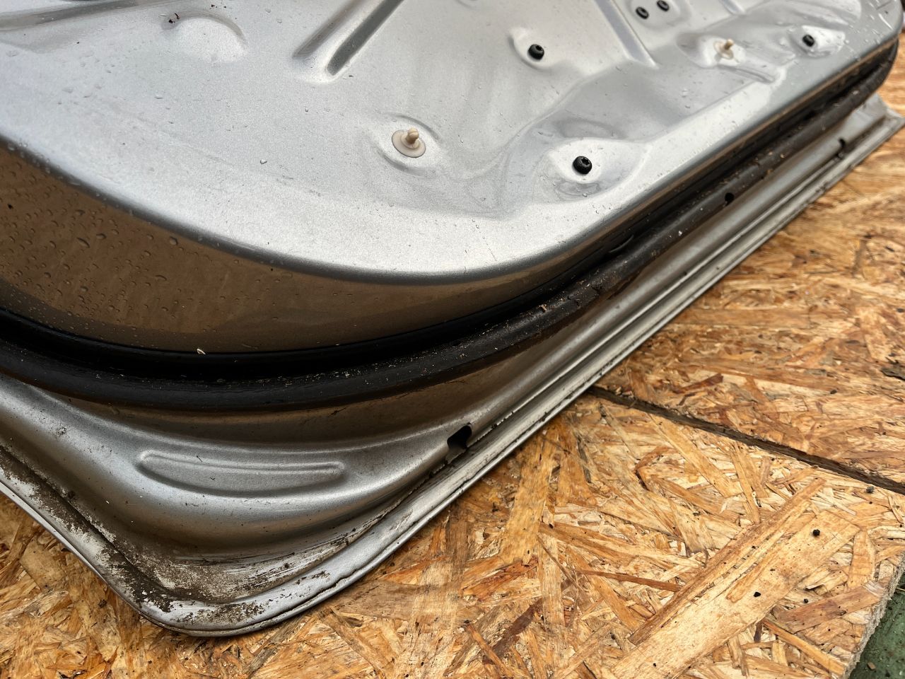 Дверь задняя (левая) серебристого цвета, в комплекте как на фото. Имеются дефекты в виде незначительного повреждения ЛКП (фото 3,4).