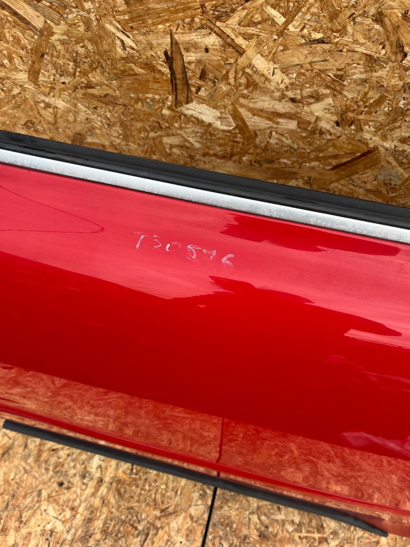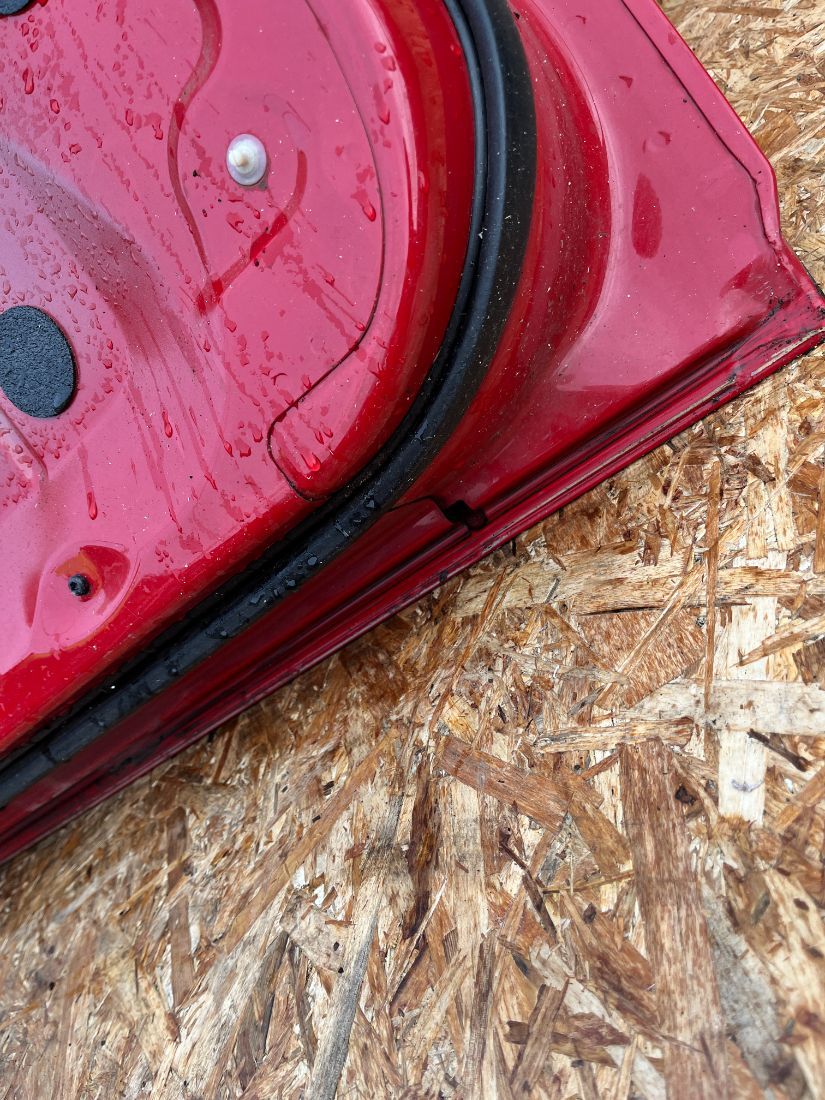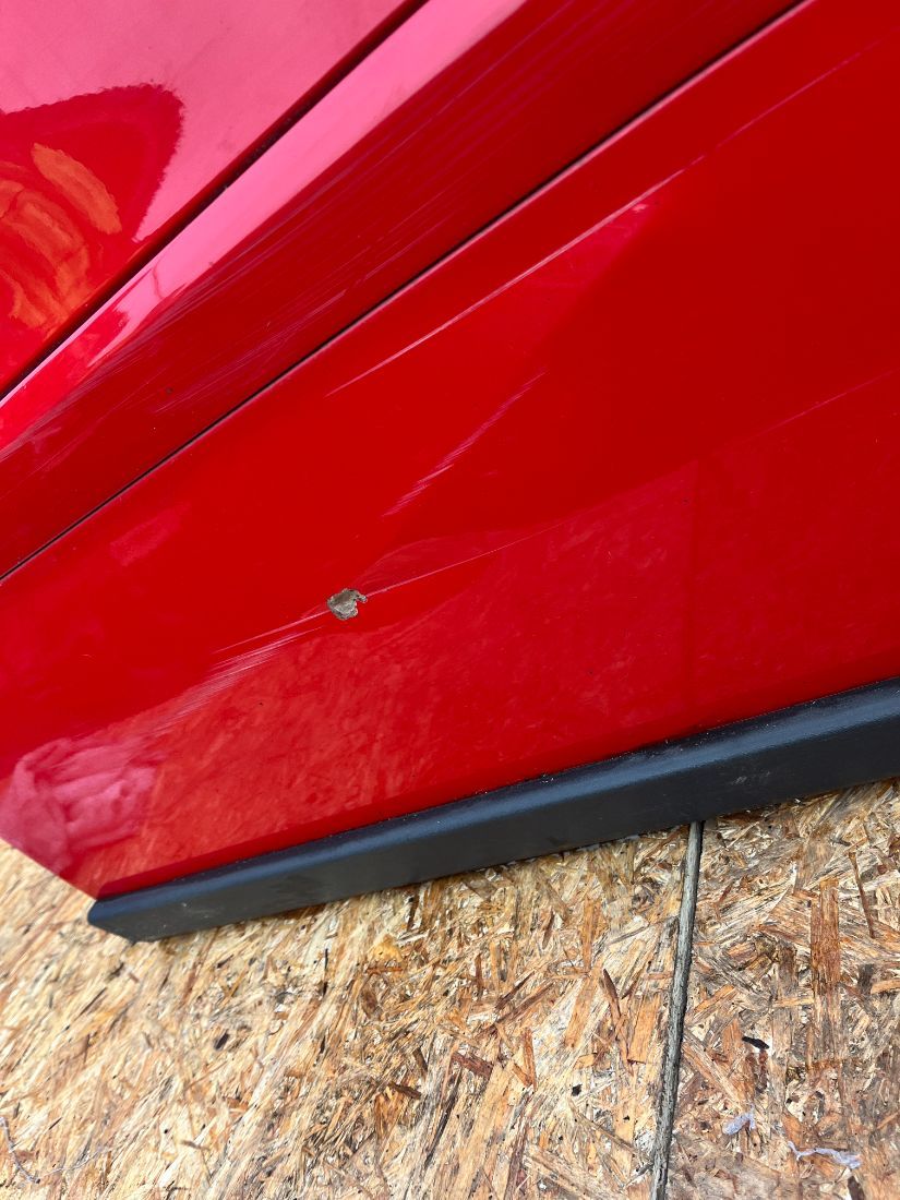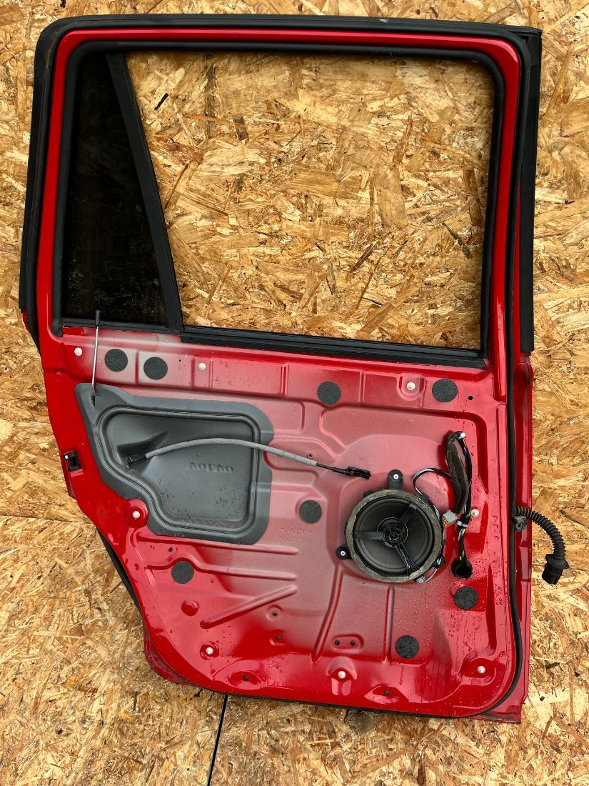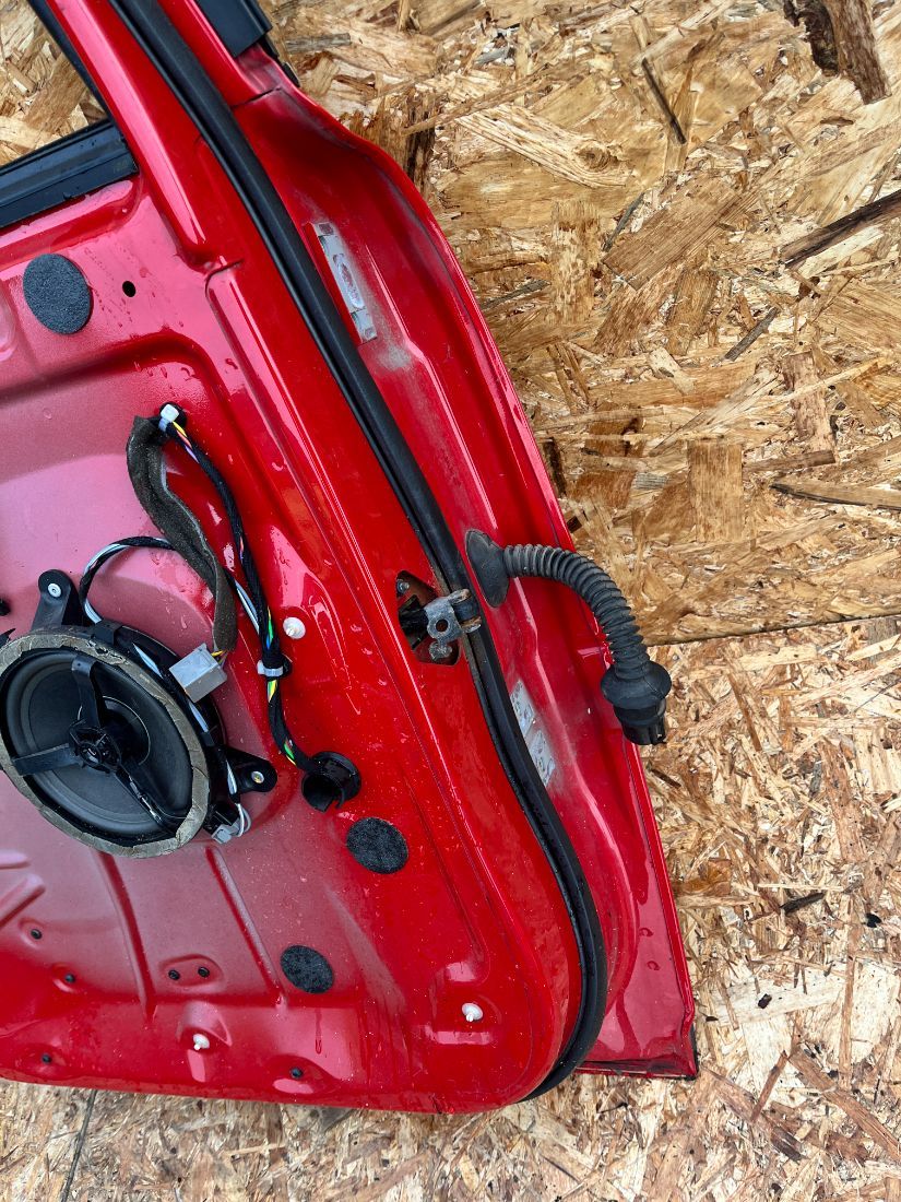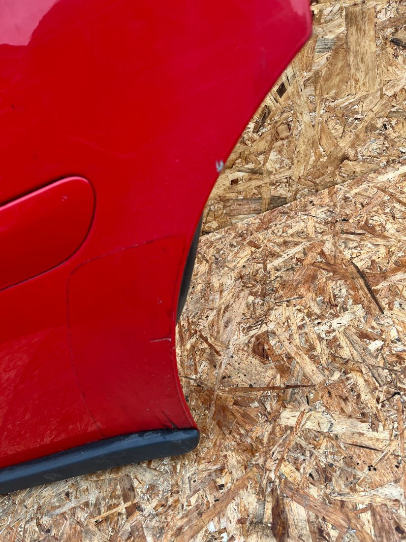 Дверь задняя (левая) красного цвета, в комплекте как на фото. Имеются дефекты в виде незначительного повреждения ЛКП (фото 3-5).