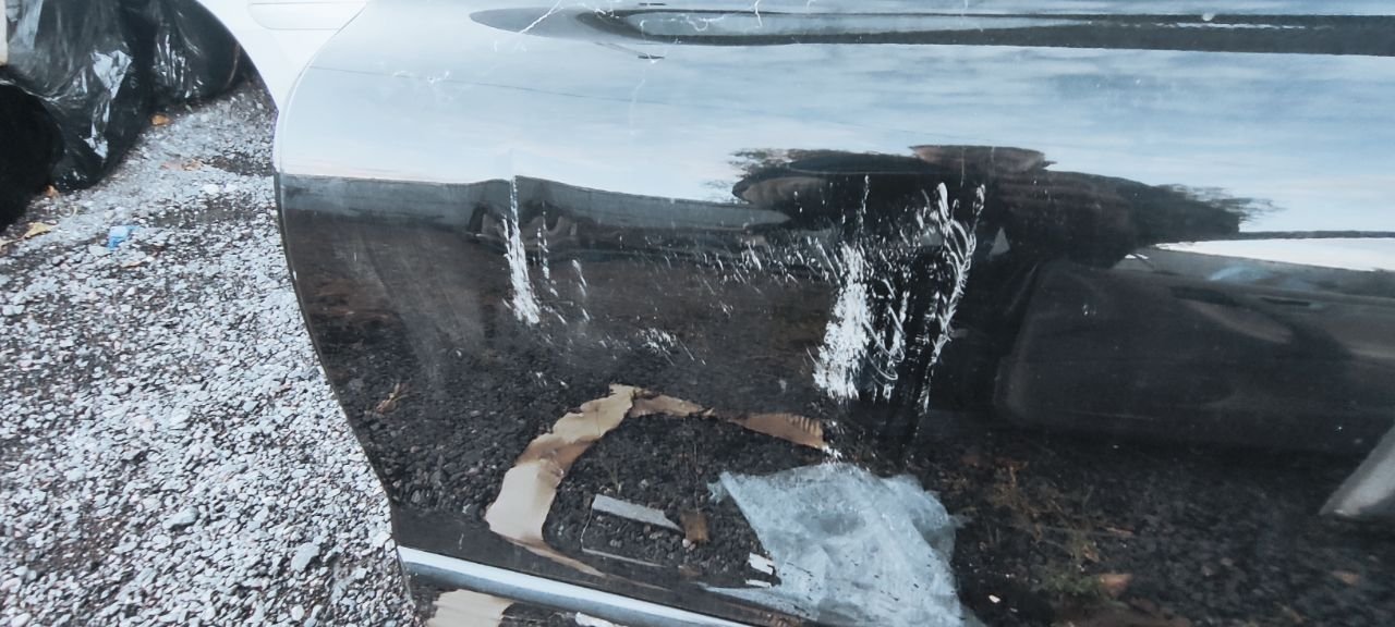 Дверь задняя (левая, черного цвета), в состоянии как на фото, присутствует дефект в виде вмятины фронтальной стороны левой части двери, а также повреждения ЛКП в виде царапин (дефекты на фото), цена указана за голую дверь
