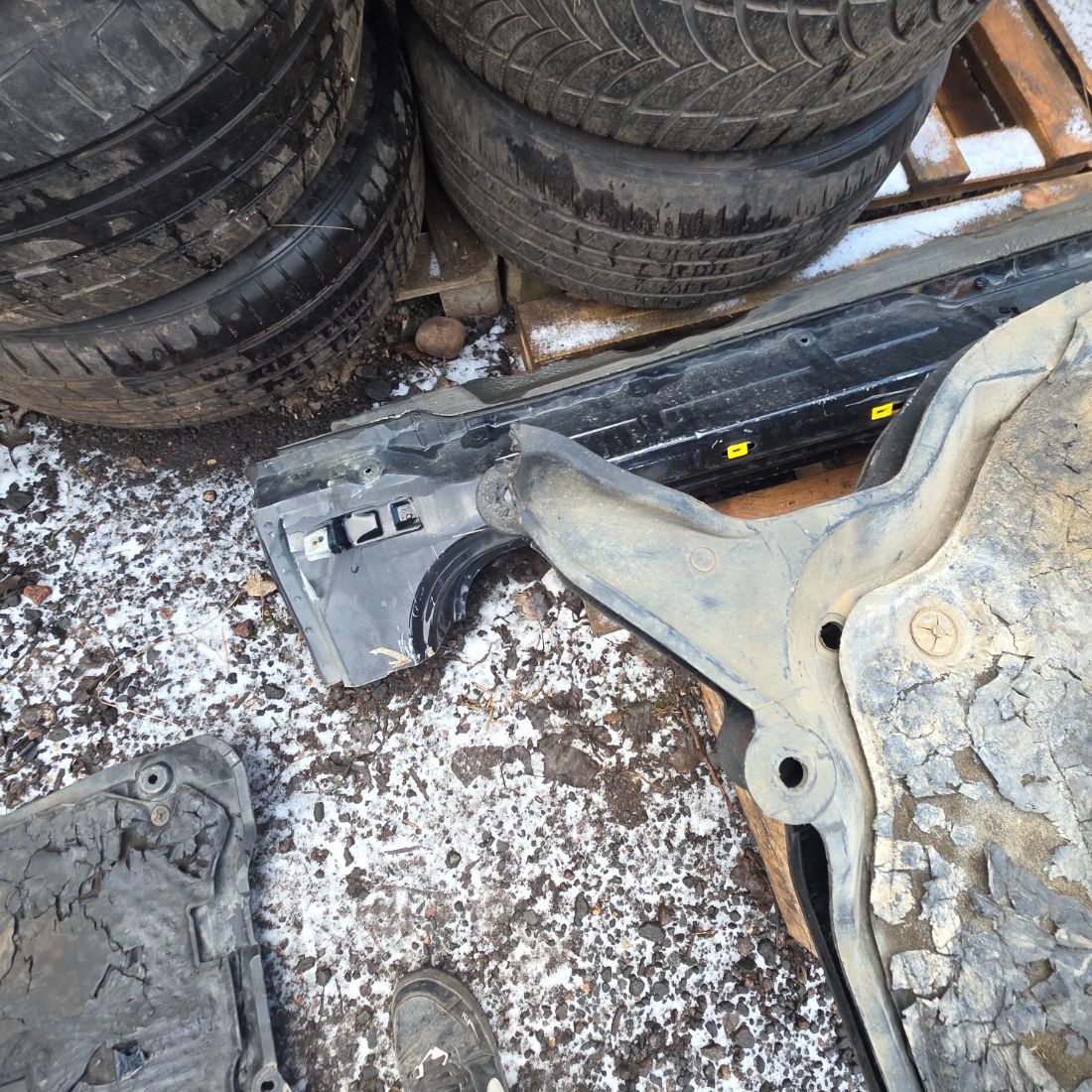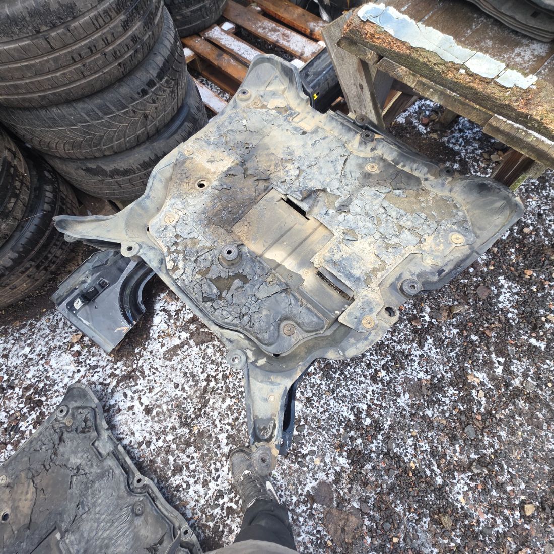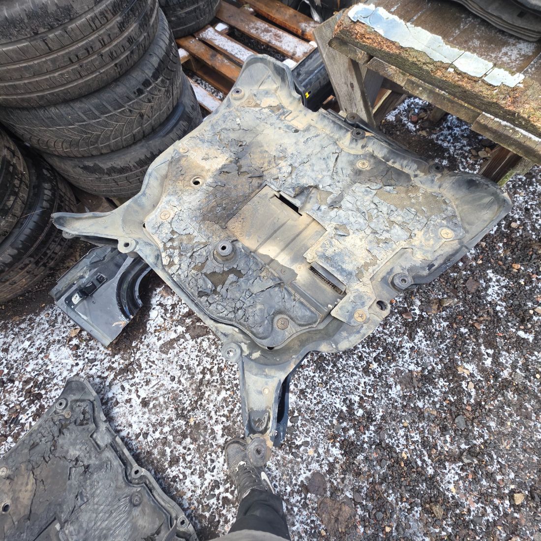 Пластиковая защита поддона двигателя, в состоянии как на фото ( имеется дефект верхнего крепления - на фото).