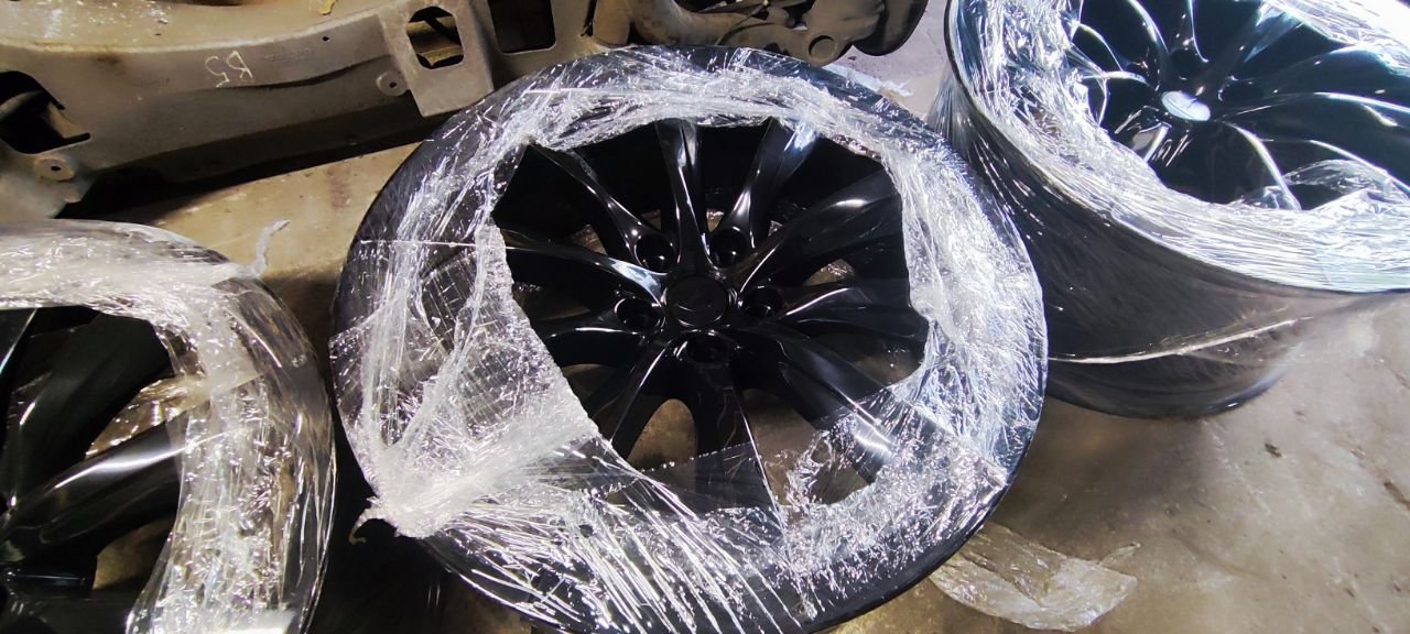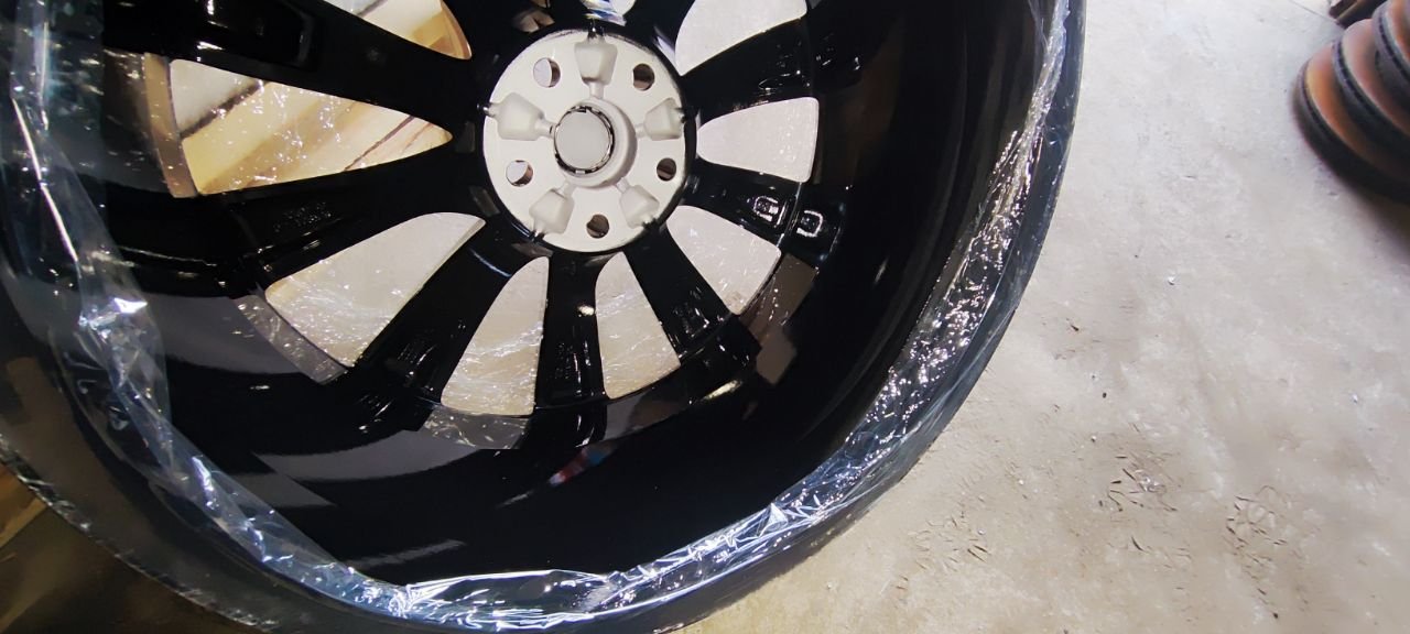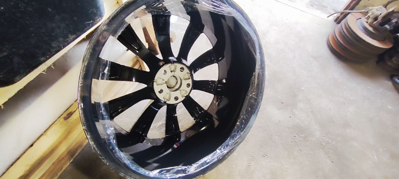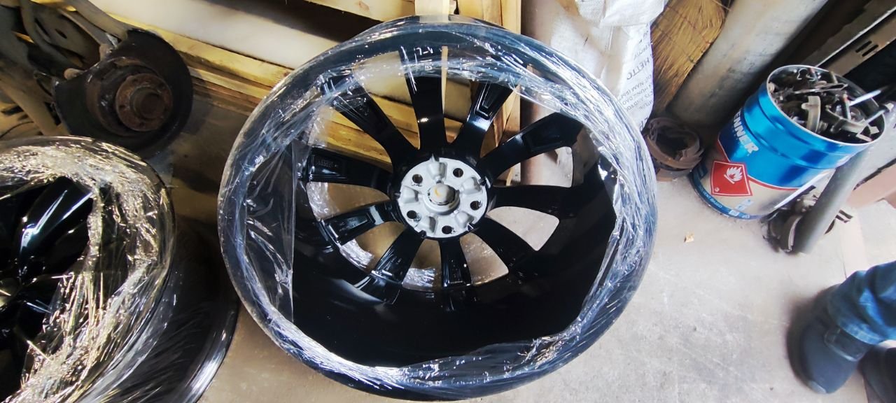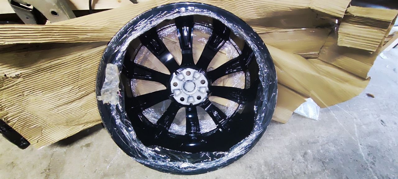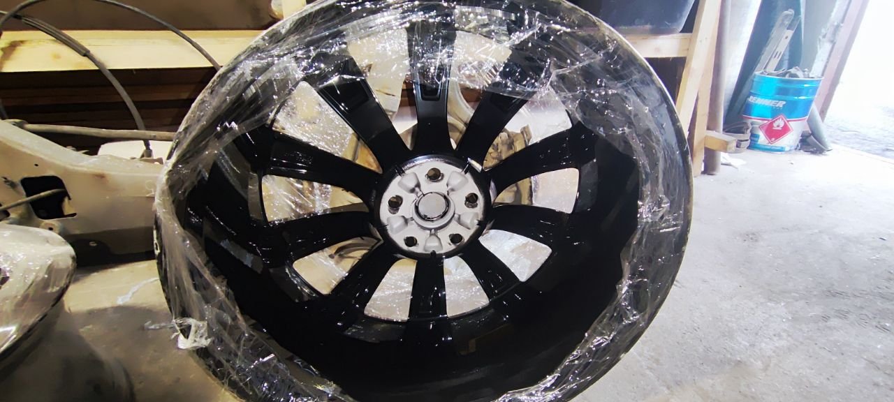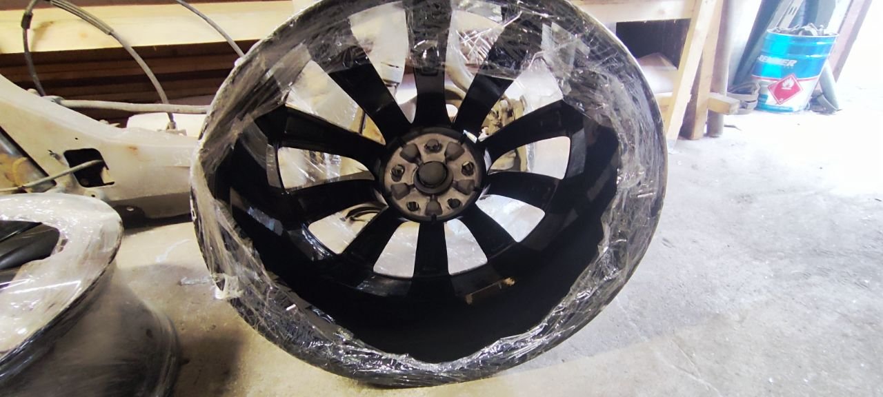 Дитые диски R22, комплект 4шт. разноширокие перед 9" зад 10" состояние новых, покрашены в черный глянец. С датчиками давления в шинах