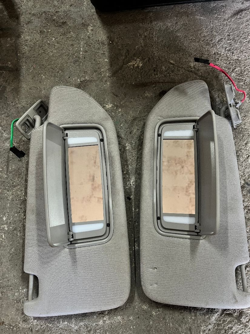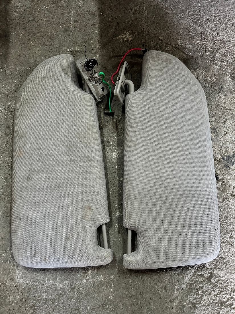 Козырек солнцезащитный (комплект, цвет - бежевый) в комплектации с проводкой, в состоянии как на фото (присутствуют незначительные дефекты, требуется чистка внешней обивки). Цена указана за одну штуку.