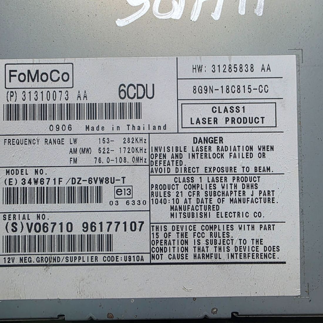 Номер запчасти 39806307,31310073,31
