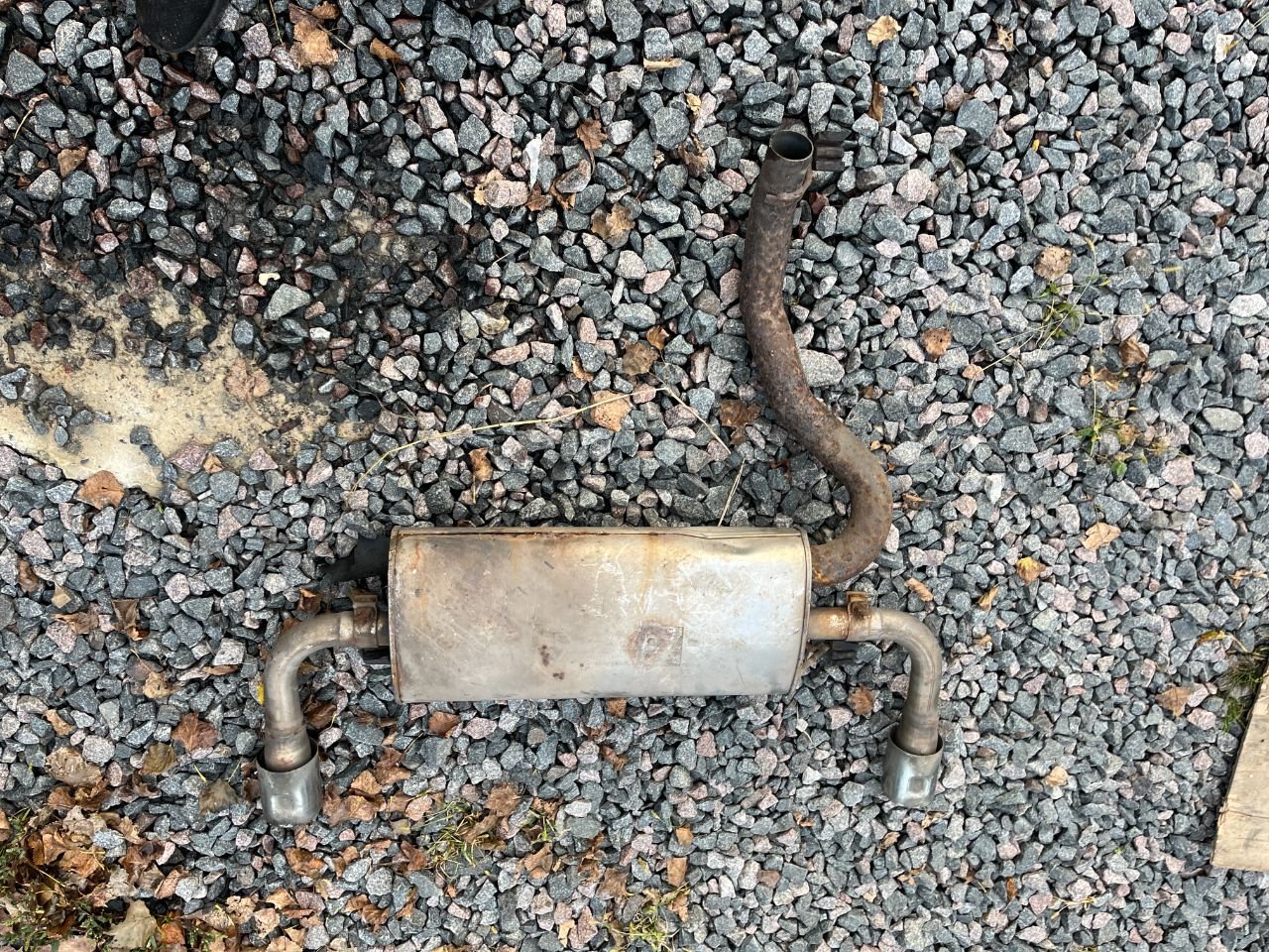 Задняя банка глушителя, в хорошем состоянии без видимых повреждений в комплектации как на фото.