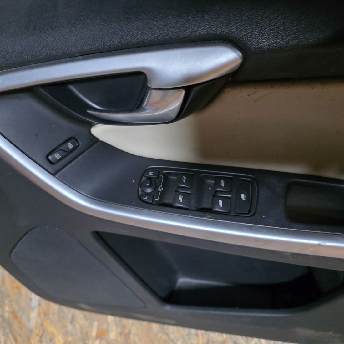 Обшивка двери (передней правой) в хорошем состоянии с вставкой из бежевой кожи.