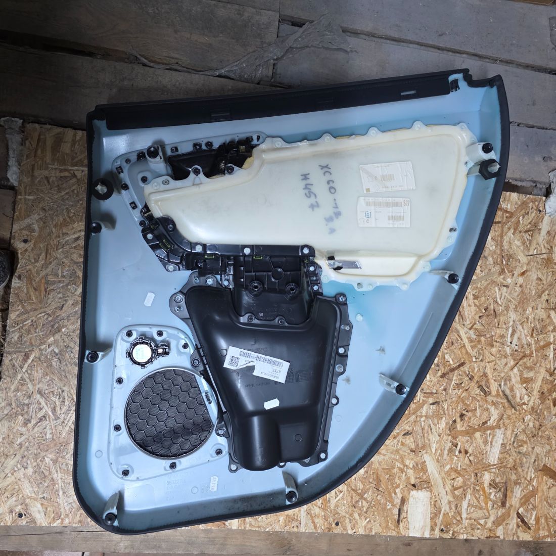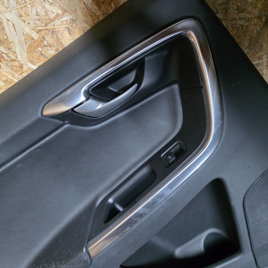Обшивка двери (задней левой) в хорошем состоянии черного цвета.