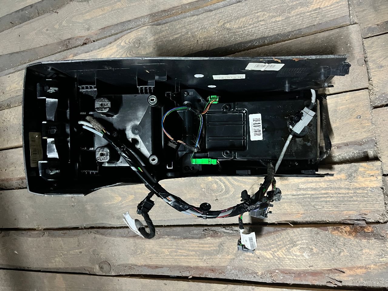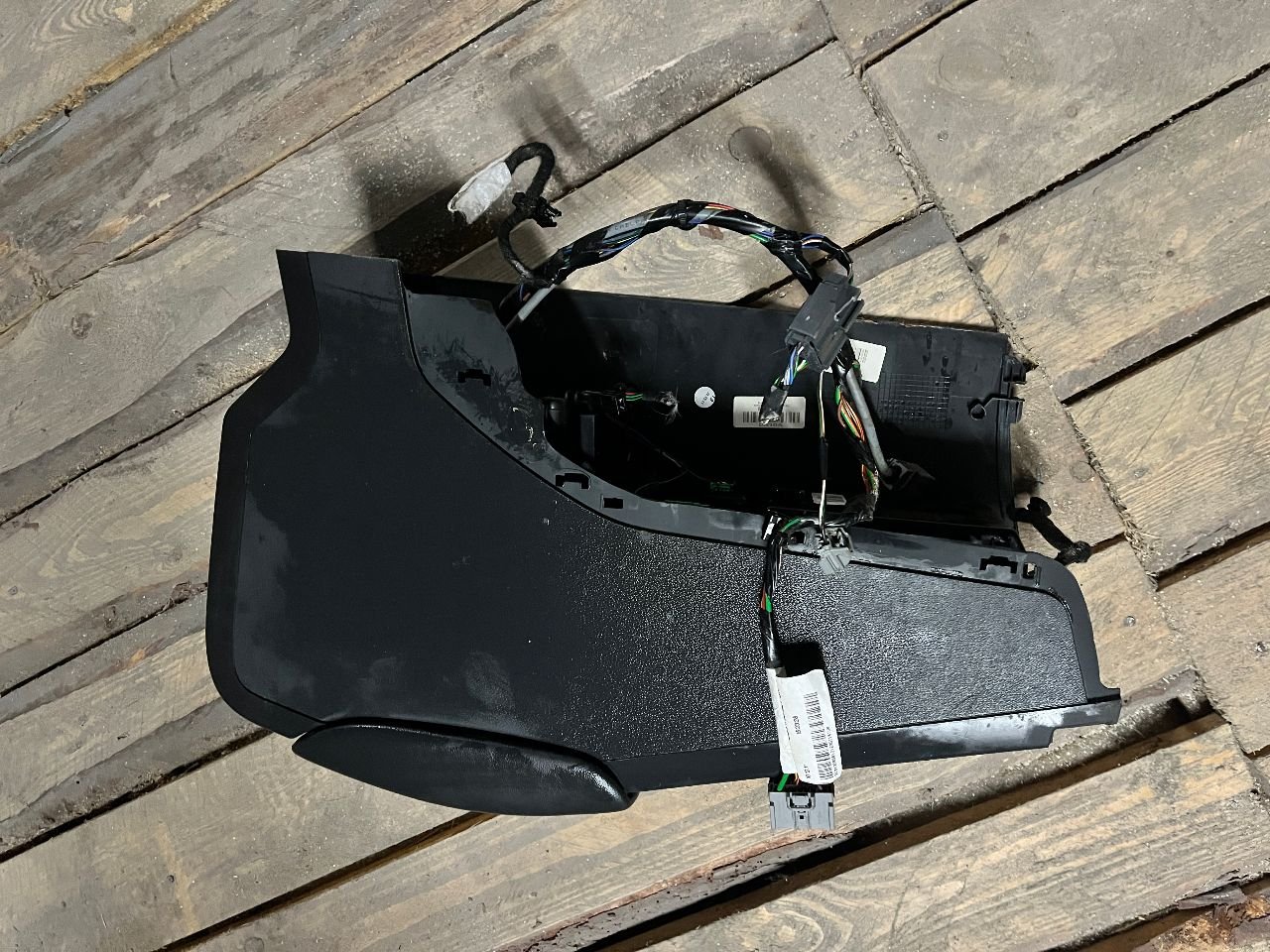 Подлокотник в хорошем состоянии, отделка - черная кожа, в комплекте с проводкой. Присутствуют незначительные следы эксплуатации.