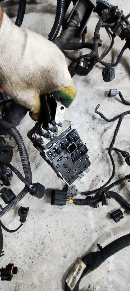Проводка (коса) двигателя в комплекте с блоком предохранителей, в отличном состоянии, присутствуют незначительные следы эксплуатации.