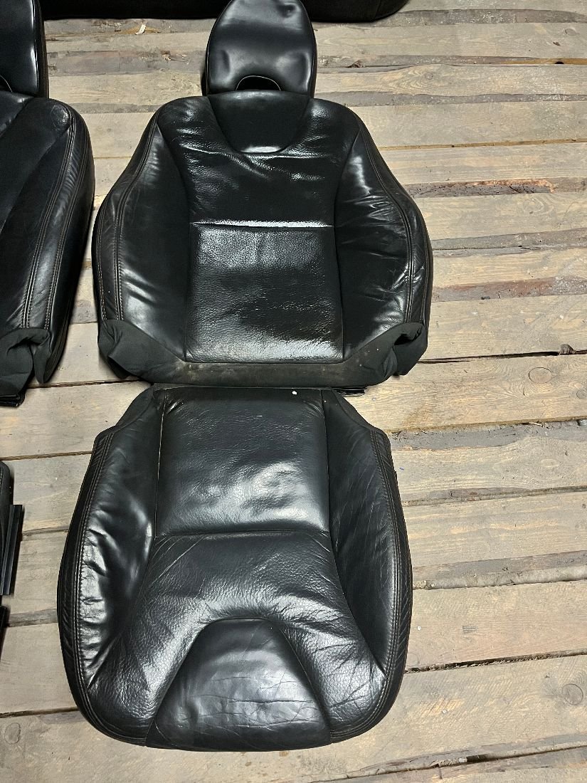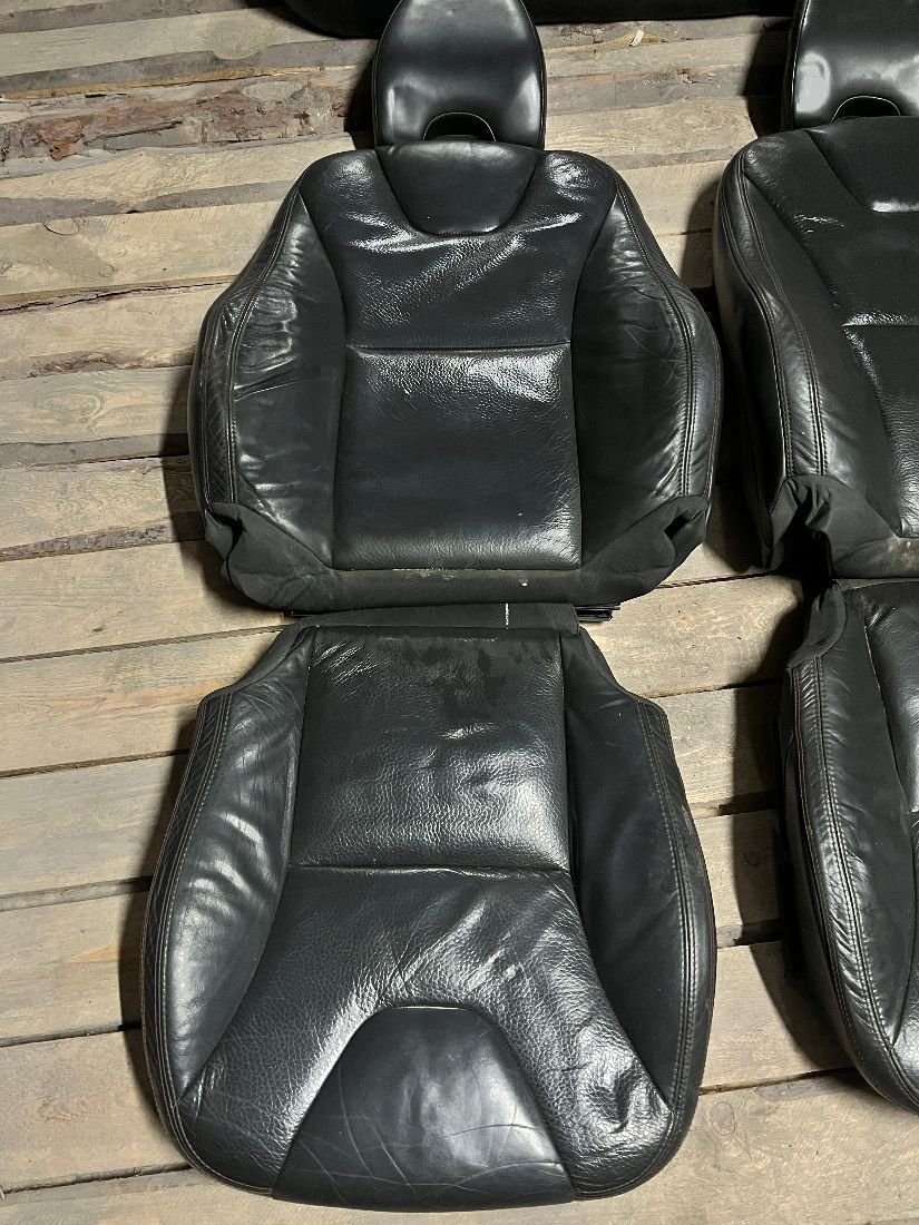Комплект сидений из черной кожи, в хорошем состоянии (присутствуют незначительные возрастные потертости - на фото), в комплекте: перед - ковши (шкурка с поролоном), зад - шкурка. Подходит на volvo V60 10-18г.