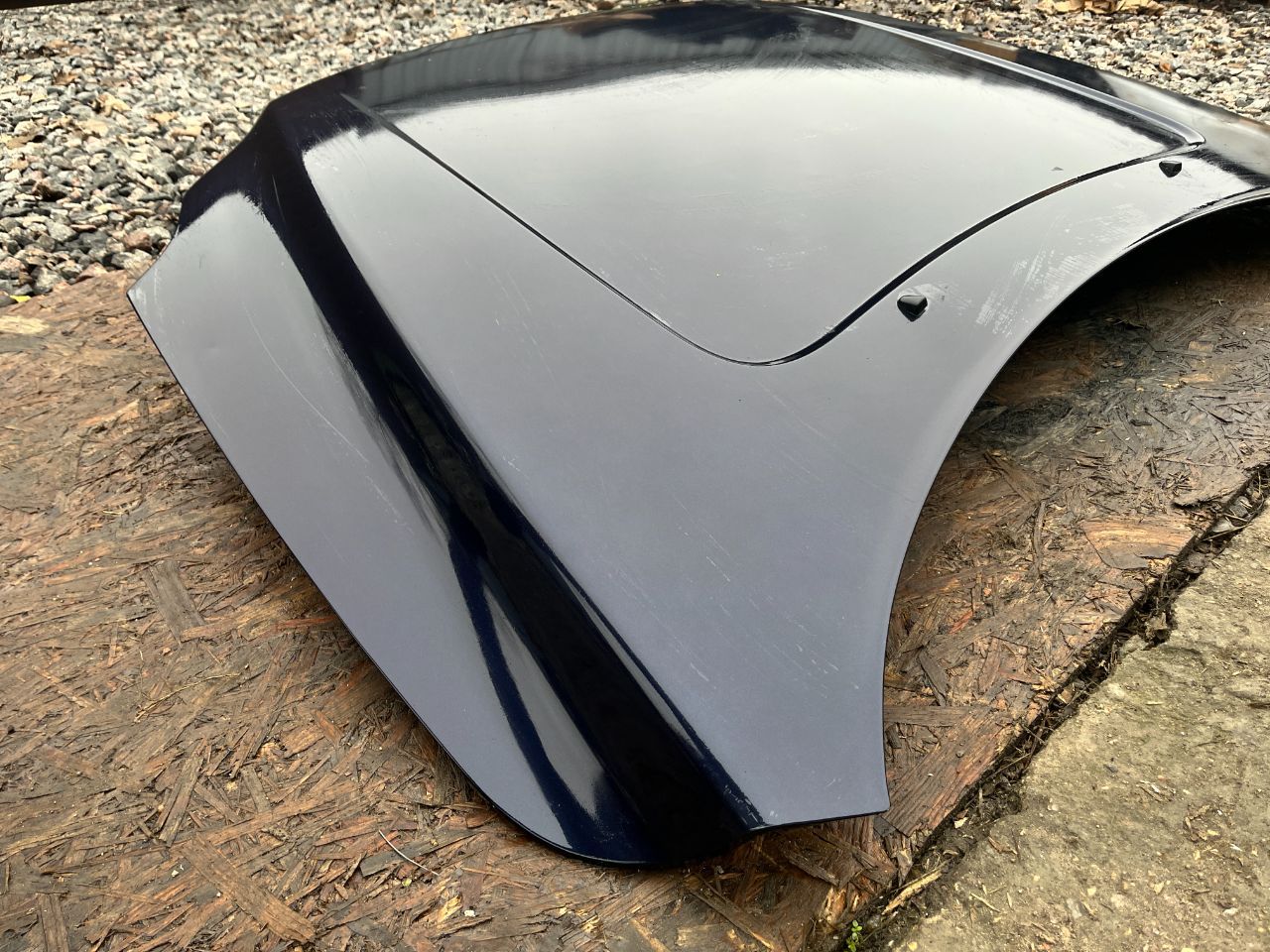 Капот темно-синего цвета, в отличном состоянии, без видимых повреждений.
