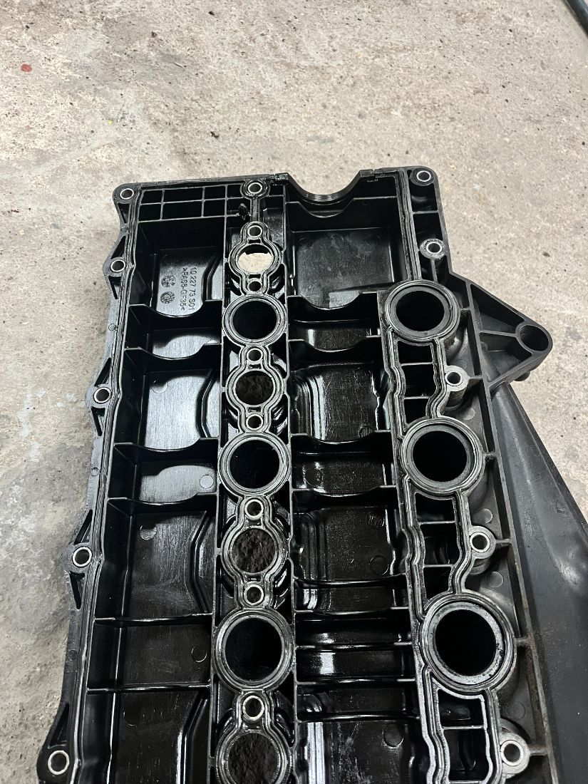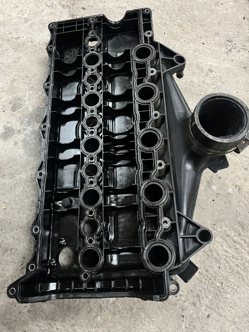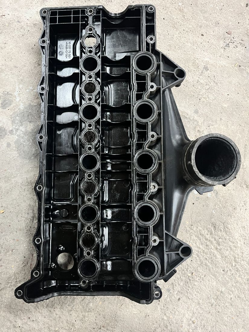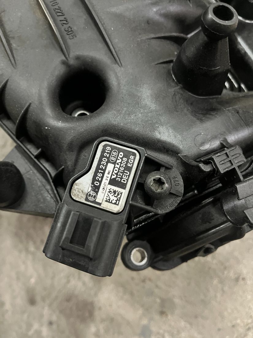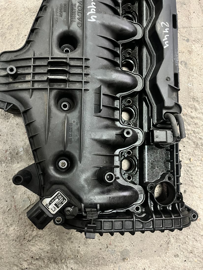 Клапанная крышка в комплекте с датчиком наддува и впускным коллектором к двигателю D5244T15, в хорошем состоянии, без повреждений.