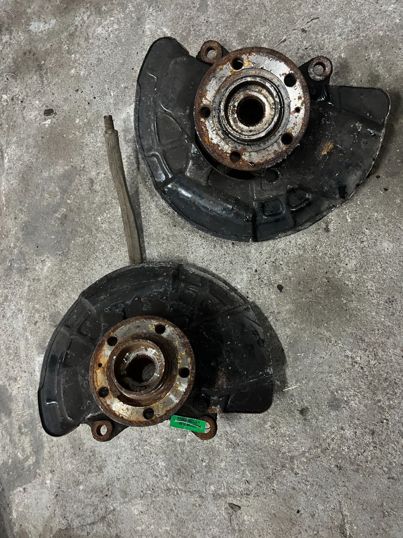 Кулак поворотный (правый, левый) в хорошем состоянии, в комплектации со ступицей, защитным кожухом тормозного диска и цапфой. Цена указана за одну единицу.